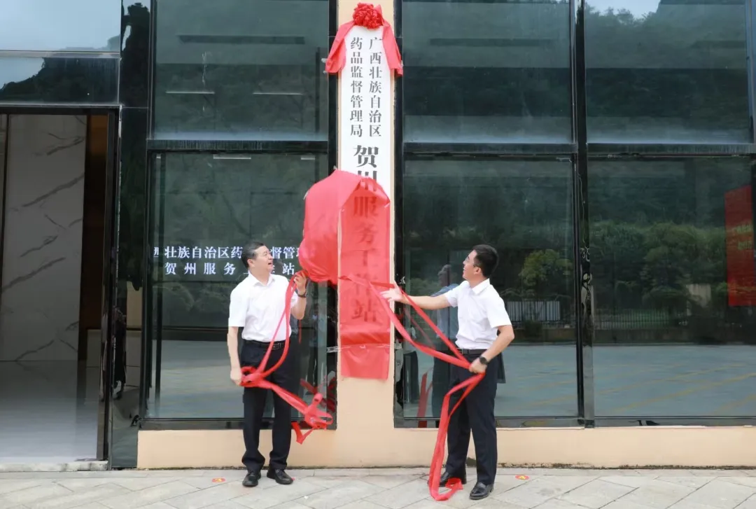 9月22日,AG官网党组书记、局长李勇强和贺州市人民政府副市长冯旭波为AG官网贺州服务工作站揭牌,广西中健药业科技有限公司现场顺利递交申报材料,标志着服务工作站从“试运行”全面转向“实质性运营”。