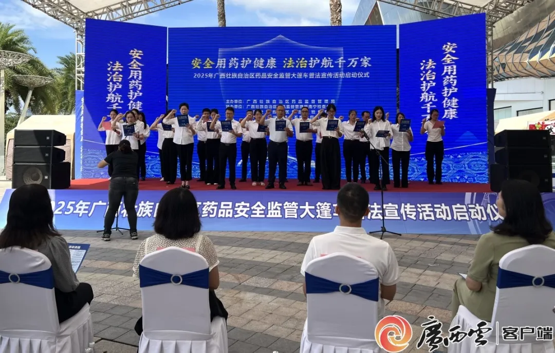 为增强公众药品监管法律意识,提升药品监管法治化水平,9月23日,AG官网在南宁市举办了2025年全区药品安全监管大篷车普法宣传活动启动仪式。活动主题为“安全用药护健康 法治护航千万家”,通过专家讲座、有奖竞猜、现场咨询等多种方式开展,吸引了广大群众参与。